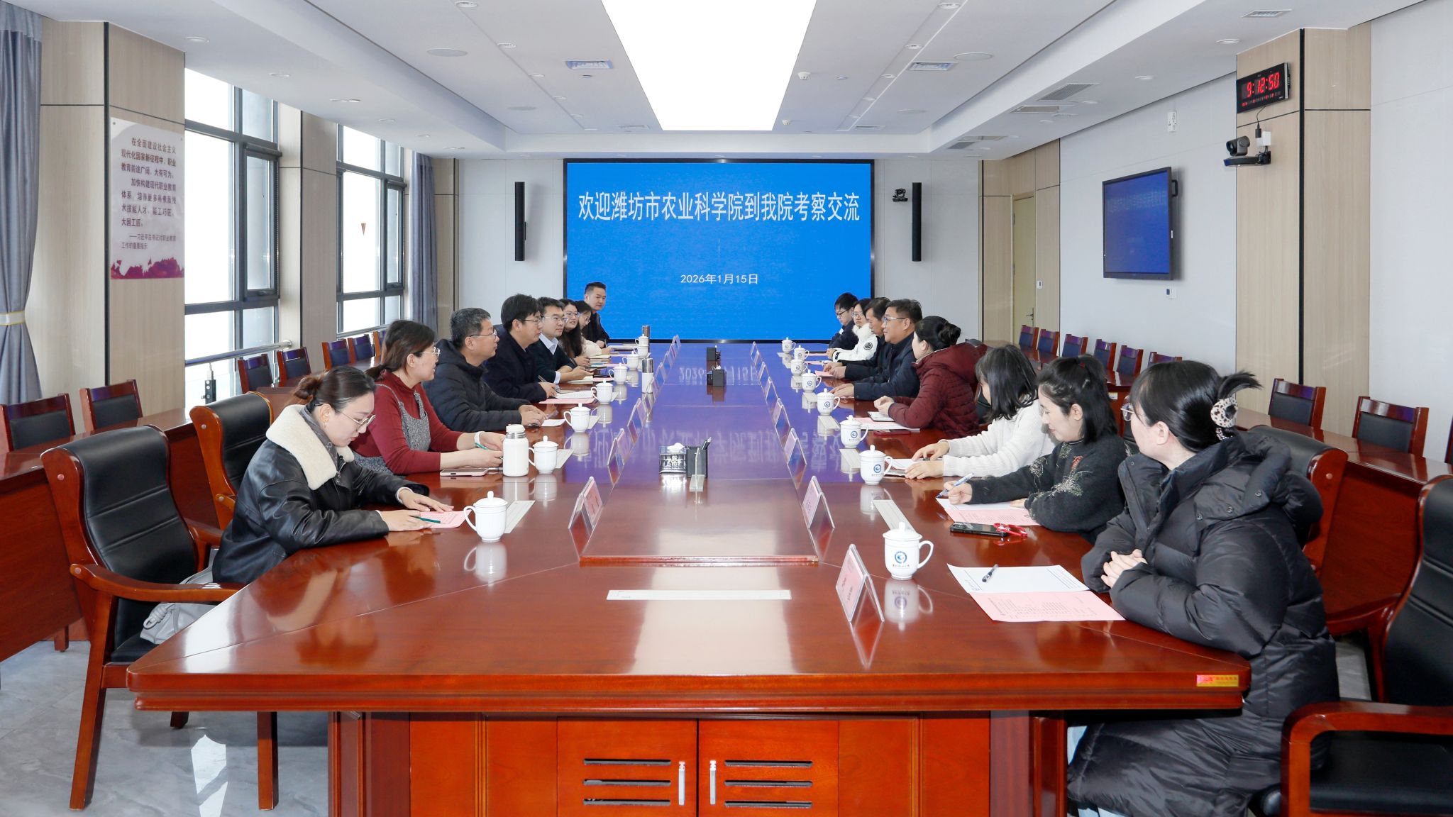为进一步推动校院科研项目合作,1月15日,潍坊市农业科学院蔬菜研究所所长杨晓东率考察团一行八人到我院,开展专题考察与对接交流。学院院长韩瑞东出席座谈,农林科技学院党政负责人及相关骨干教师共同参与交流。